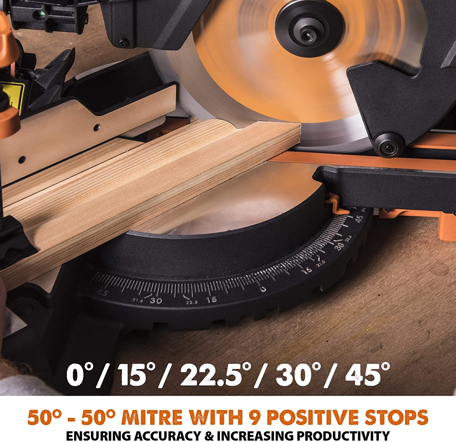 Max. Compound Cut Right (45° x 45°): 212mm x 34mm