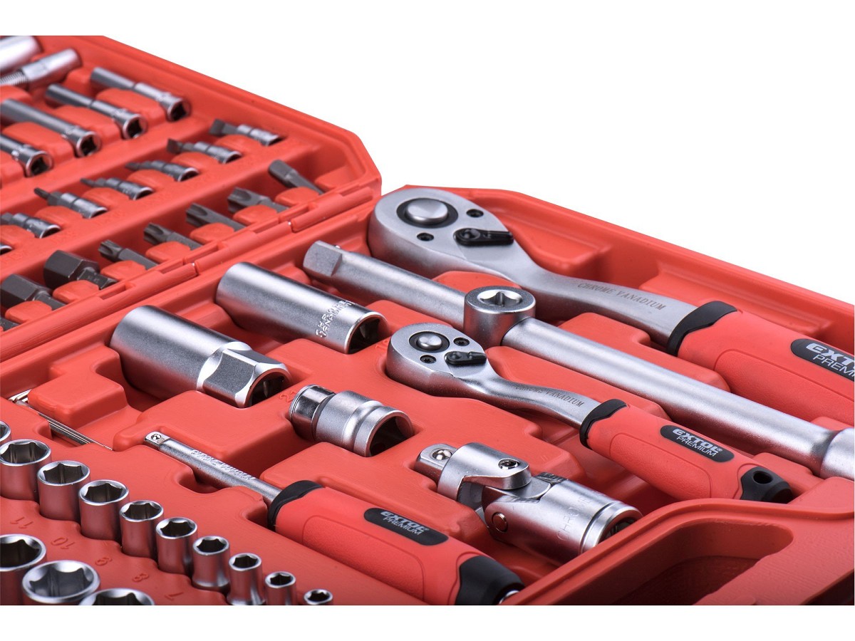 Extol Premium set gedora/uticnica i dodataka je komplet od 94 komada koji sadrži najčešće potrebne nasadne ključeve, bitove i dodatke za mehaničarske i montažne poslove u autodijelovima, radionici ili kod kuće. Idealna je kao pomoćni alat za servisne poslove i popravke jer omogućava veliki izbor veličina u jednom kompletu.