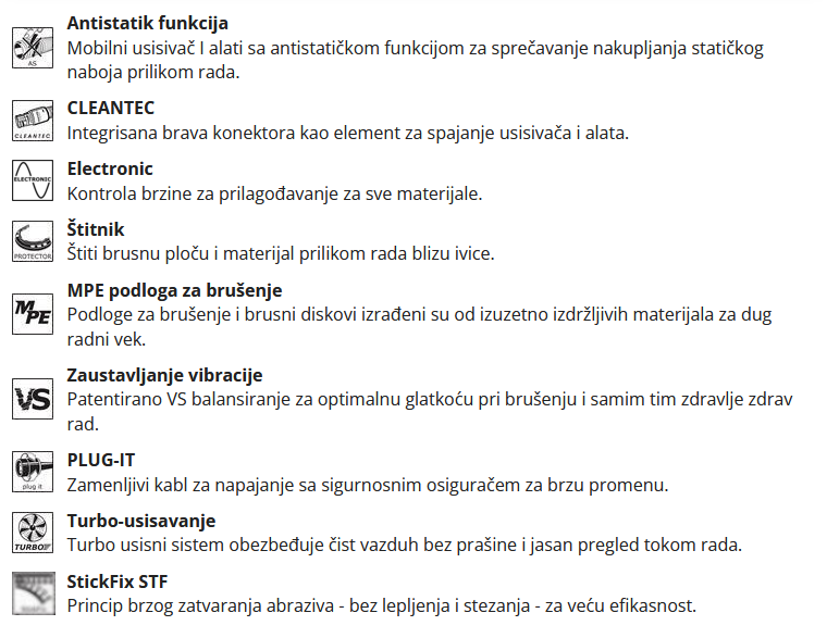 Ergonomski oblik i mala težina (samo 1,2 kg) omogućavaju udoban rad bez zamora, dok integrisana vrećica za prašinu i Jetstream sistem garantuju rad bez prašine i duži vek trajanja brusnog diska.