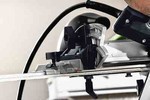 Vodeće čeljusti IS 330 mogu se postaviti na šinu bez alata. Prednost: Nulti pomak kod vođenja testere i samim tim tačna sečenja.