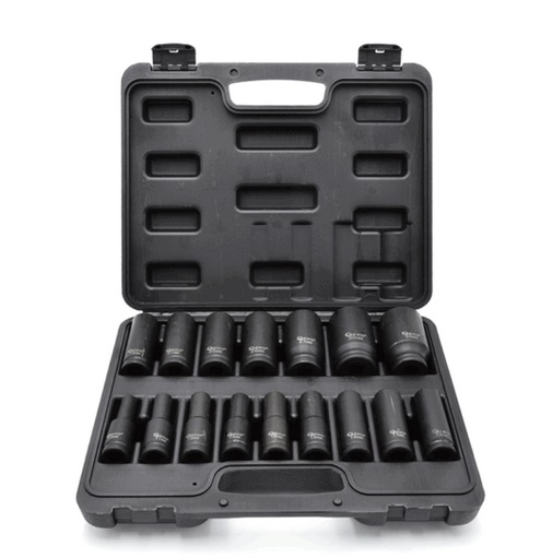 Set dugih udarnih utičnica (78mm) 1/2″. Set od 16 utičnica upakovanih u plastičnu kutiju.