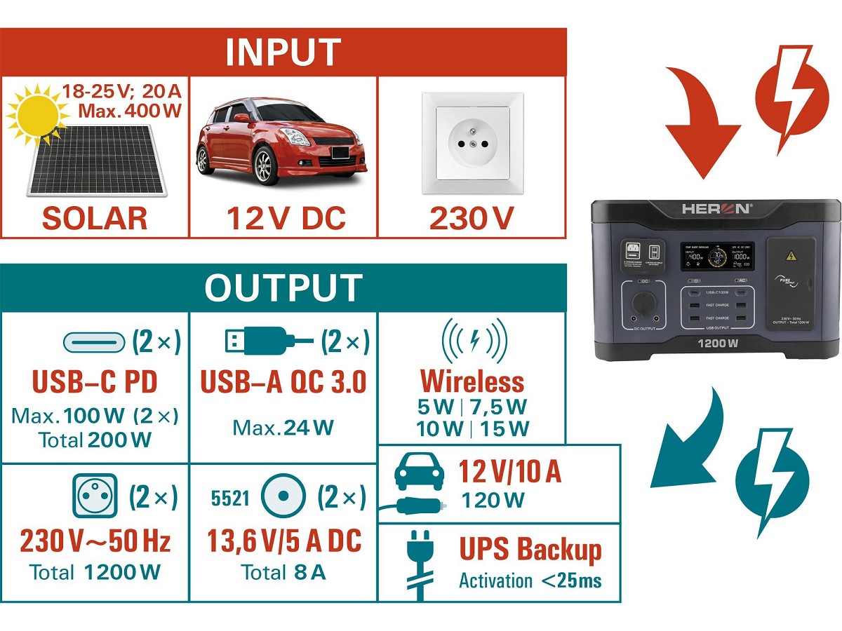 Naziv proizvoda : Heron prenosiva električna stanica - baterijski generator 1200W , 921Wh (8896801)