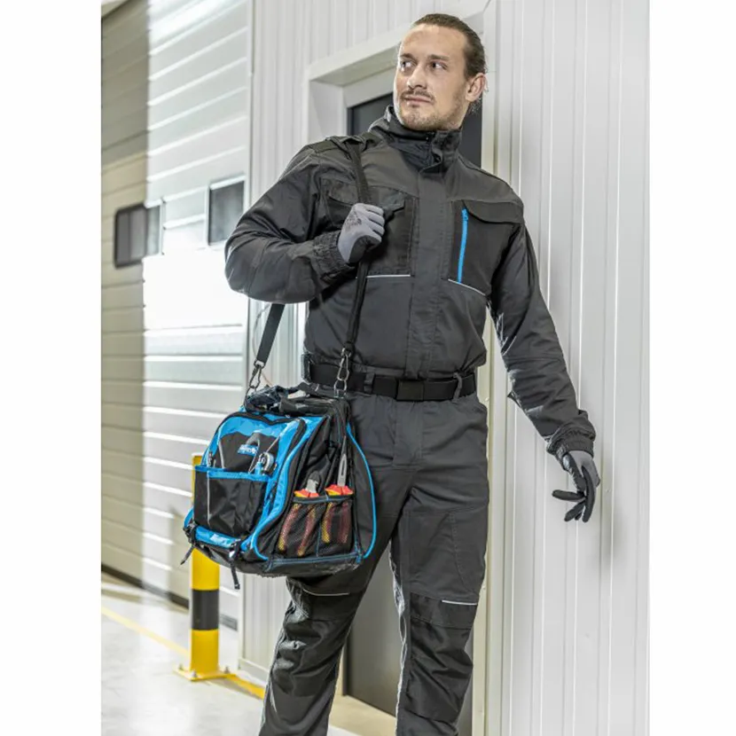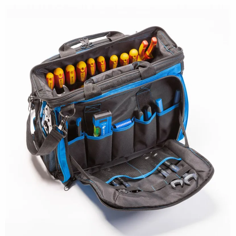 Unutrašnjost torbe je pažljivo organizovana kako bi se omogućila maksimalna efikasnost i lakoća prilikom rada. Sa tri glavna odeljka, 15 petlji za fiksiranje alata i 23 različito velika džepa, ova torba omogućava da svaki alat bude na svom mestu, čime se smanjuje vreme potrebno za traženje i povećava produktivnost.