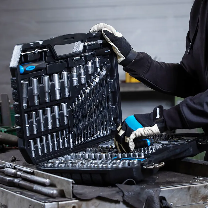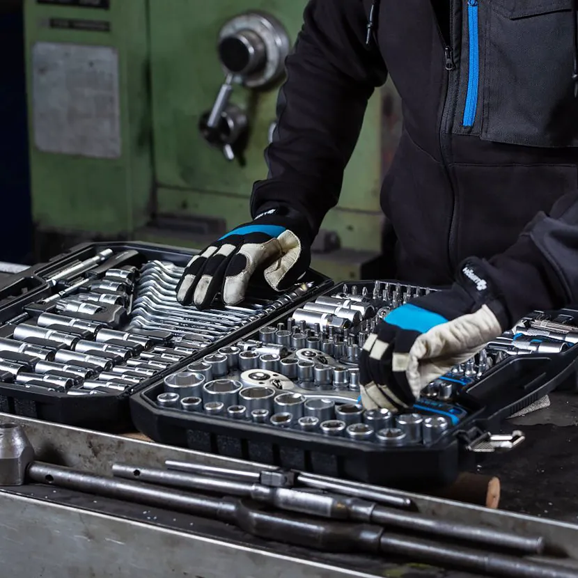 Set je upakovan u praktičnu ojačanu kutiju sa metalnim bravama i šarkama, što olakšava transport i čuvanje alata. Račne sa 72 zuba su napravljene od legiranog čelika CrMo, dizajnirane čak i za teške profesionalne uslove rada.