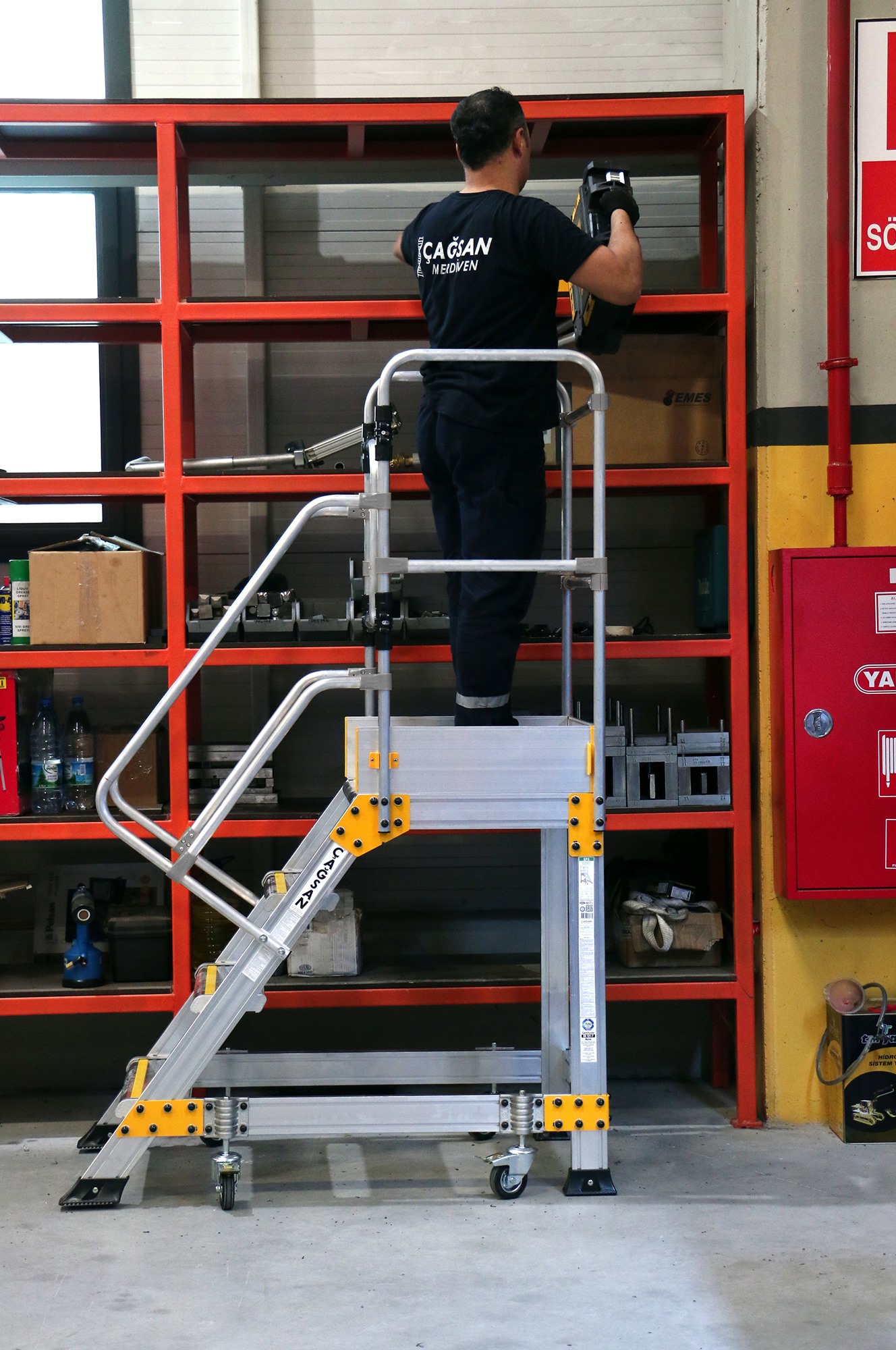 DetaljnijeIndustrijske platforme za različite namene su odlične za sigurnost kod teških radova na visini. Visine ovih platformi su različite kao i broj gazišta. Sve industrijske platforme su aluminijumske i lagane za manevrisanje u prostoru zbog posedovanja točkova sa kočnicama. Pored manuelnih kočnica na točkovima poseduju i automatske kočnice.