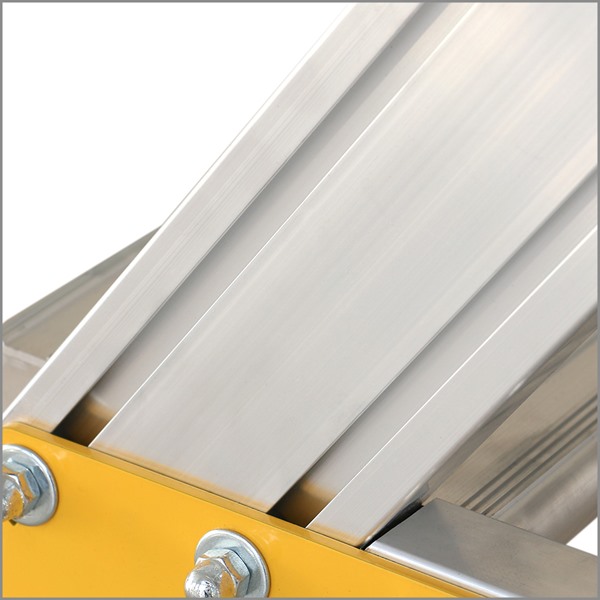 Aluminijumske radne platforme se proizvode u različitim dimenzijama, od 2 do 6 stepenika. Jednostrane industrijske aluminijumske platforme imaju dimenziju platforme 60×61 cm, a najveću radnu visinu do 355 cm.