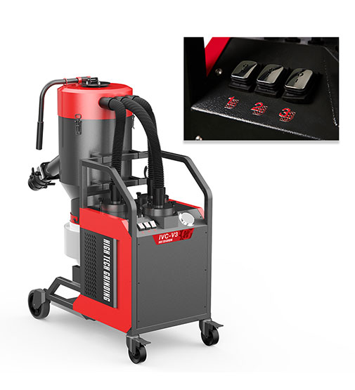 Industrijski usisvač Xingyi IVC-V3 je usisivač dizajniran posebno za mašine za brušenje betona. Filtracija se vrši preko velikog filtera, i HEPA filtera. Čišćenje se vrši obrnutim potiskom vazuha, manuelni tip. Ima tri monofazna motora od 1.1kW, sa odvojenim prekidačima, što je vrlo zgodno iz razloga pouzdanosti rada i neadekvatne jačine struje na gradilištu.