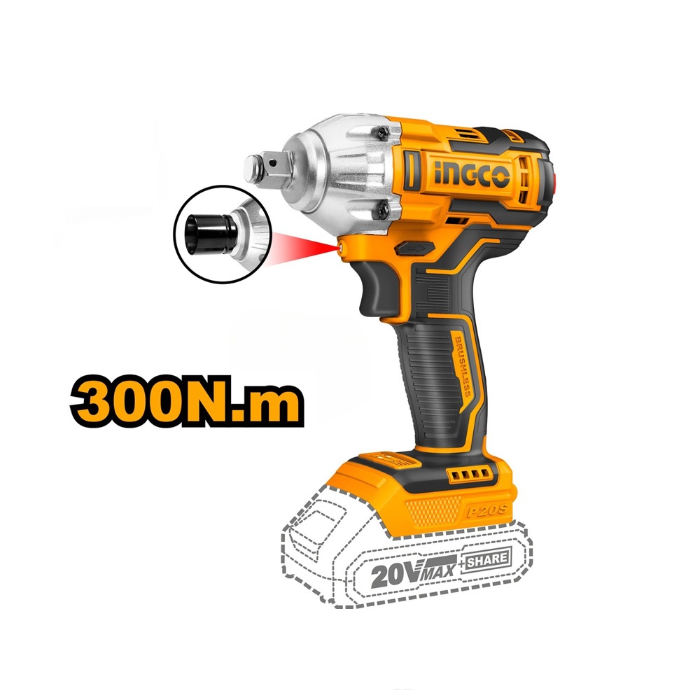 INGCO Akumulatorski udarni odvijač bez četkica CIWLI2038, 1/2", 20V, 300Nm
