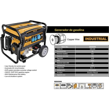 Naziv proizvoda : Ingco benzinski generator 6.5kW, 240V - GE65006