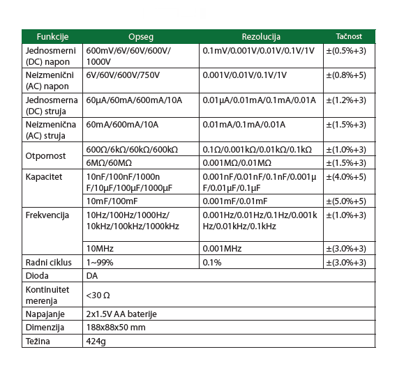 Naziv proizvoda : INSIZE Multimetar digitalni 9246-180