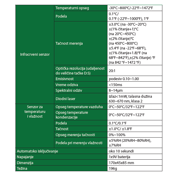 namenjen za beskontaktno (infracrveno) merenje temperature pritiskom na dugme