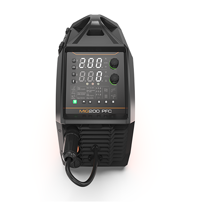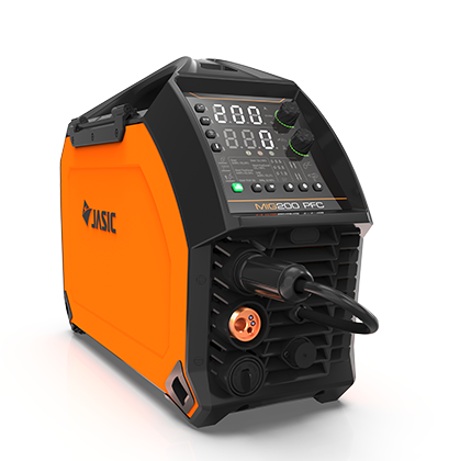 JASIC MIG200 PFC je profesionalni inverterski aparat sa robustnim industrijskim kućištem, ergonomskom drškom i digitalnim ekranom.