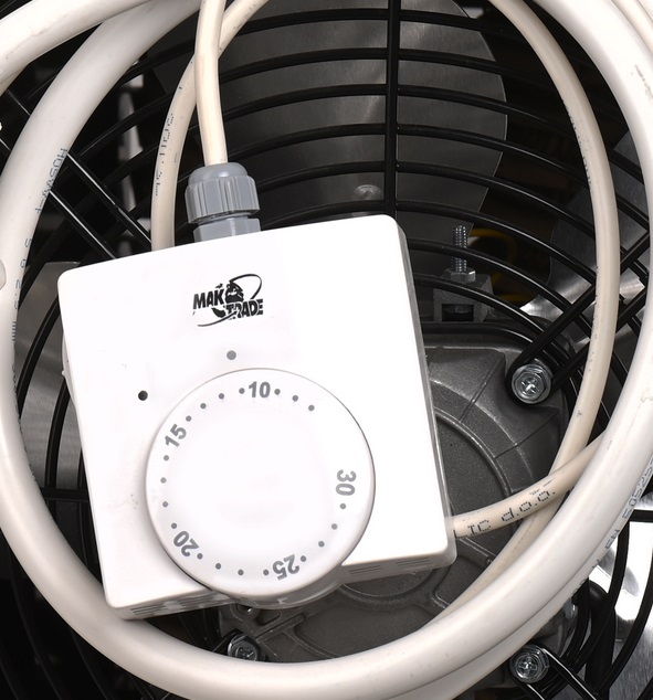 Kalorifer poseduje termostat kojim regulišete željenu temperaturu u opsegu od 0° do 30° stepeni. Termostat štedi električnu energiju, jer prekida rad uređaja kada se dostigne željena temperatura.Takođe, priključni kabal je ugrađen u kalorifere. Kalorifer 3kW model poseduje klasični monofazni utikač 2P+E. Električni grejači za kalorifere se prave od šamota u obliku spirale. Šamotni grejač je napravljen od specijalne vatrostalne opeke koji akumulira i emituje toplotu. Zahvaljujući snažnim industrijskim ventilatorima, topao vazduh se brzo proširi prostorijom.