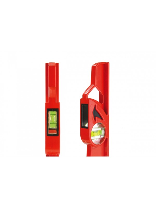 2 čvrste akrilne bočice sa mehurom otporne na udarce - vertikalna bočica sa mehurom koja poseduje prozorčić za kontrolu vertikalnosti i horizontalna bočica sa podeonim linijama za nagib do 2%
