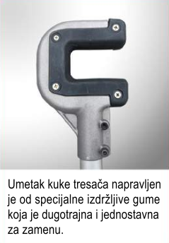 Frekvencija i drška dizajnirani su tako da ne oštećuju biljku i njene pupoljke. Antivibracioni sistem na dršci, oslobađaju korisnika od vibracija i olakšavaju rad korisniku, koji će ceniti efikasnost, dugotrajnost i pouzdanost ovog inzvanrednog tresača šljiva, višanja, maslina i sličnih plodova.