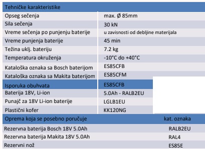 Naziv proizvoda : Klauke ES 85 Baterijske hidraulične makaze do Ø 85mm, bat. + punjač + kofer