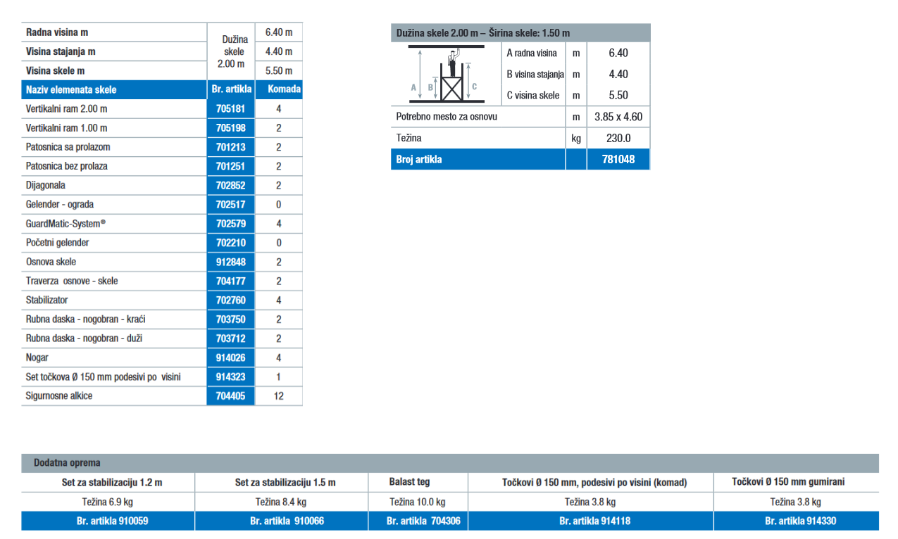 nosivost skele 200 kg/m2 (kategorija skela: grupa 3)