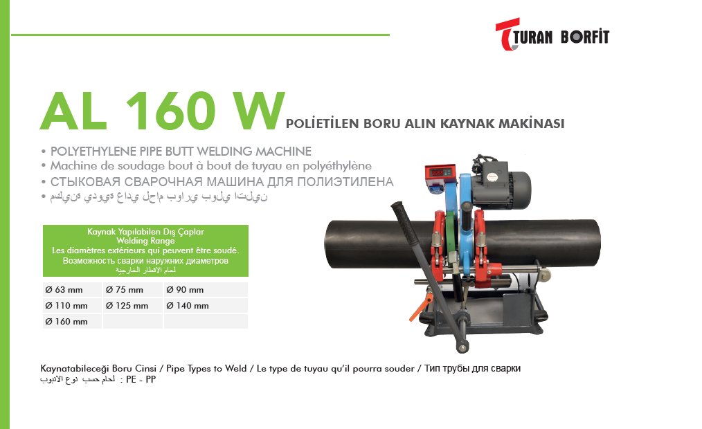 Naziv proizvoda : Mašina za sučeono zavarivanje pe + pp cevi ALH160, 40-160mm Borfit Mehanički-ručni pogon