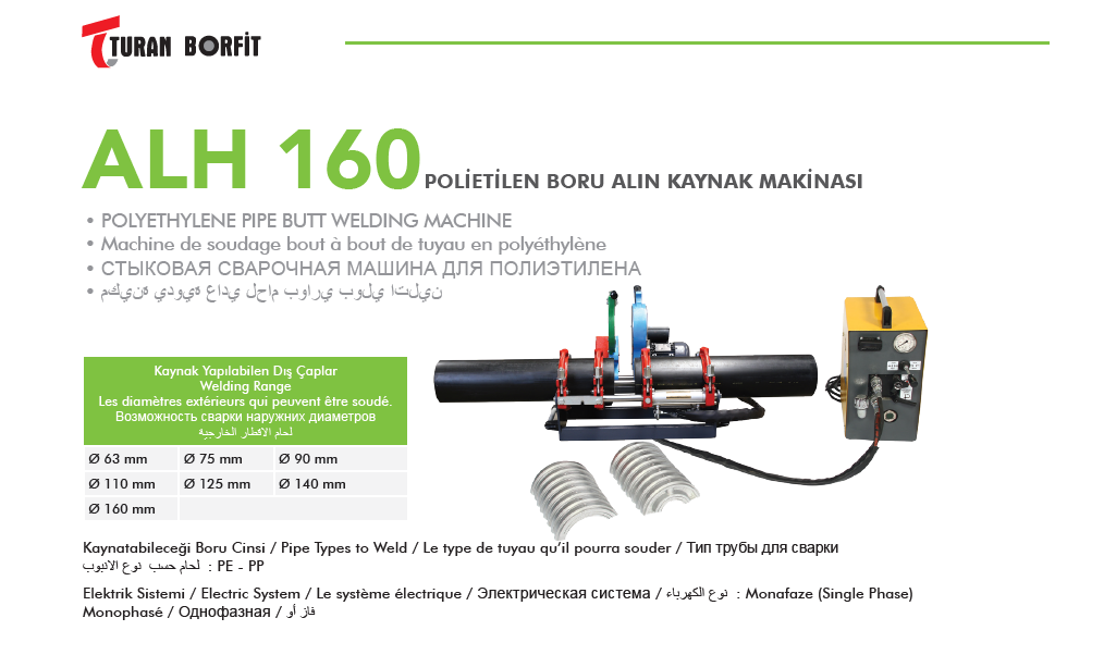 Naziv proizvoda : Mašina za sučeono zavarivanje pe + pp cevi ALH160, 63-160mm Borfit hidraulicni pogon