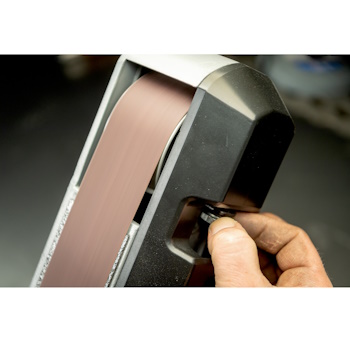 Brza zamena brusne trake bez alata nakon otvaranja poklopca.