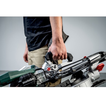 Stacionarna potezna kružna testera/potezni ger za drvo KGS 254 M Metabo 613254000 sa brzim, preciznim podešavanjem uobičajenih uglova pomoću tačaka zaustavljanja.
