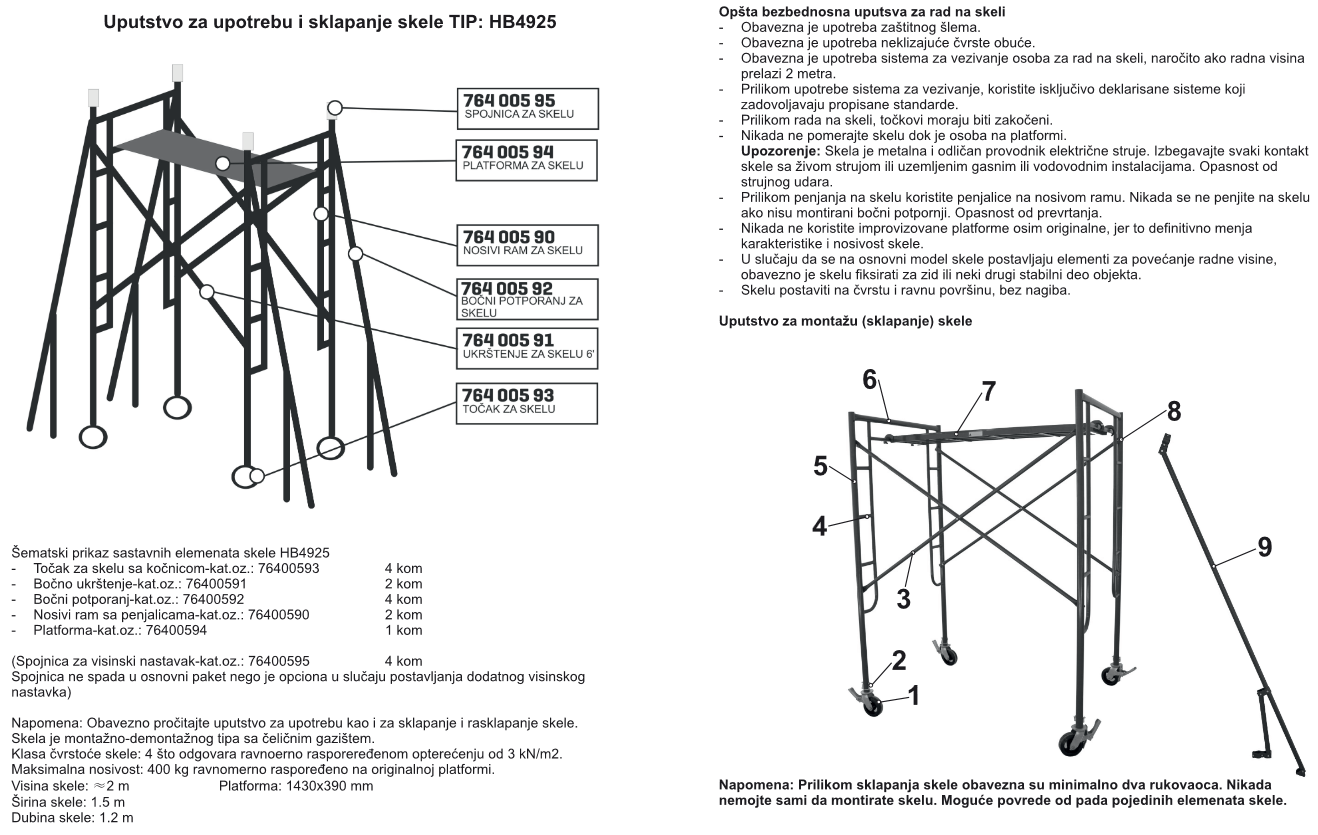 Naziv proizvoda : Metalna Skela, radna visina 5,2m