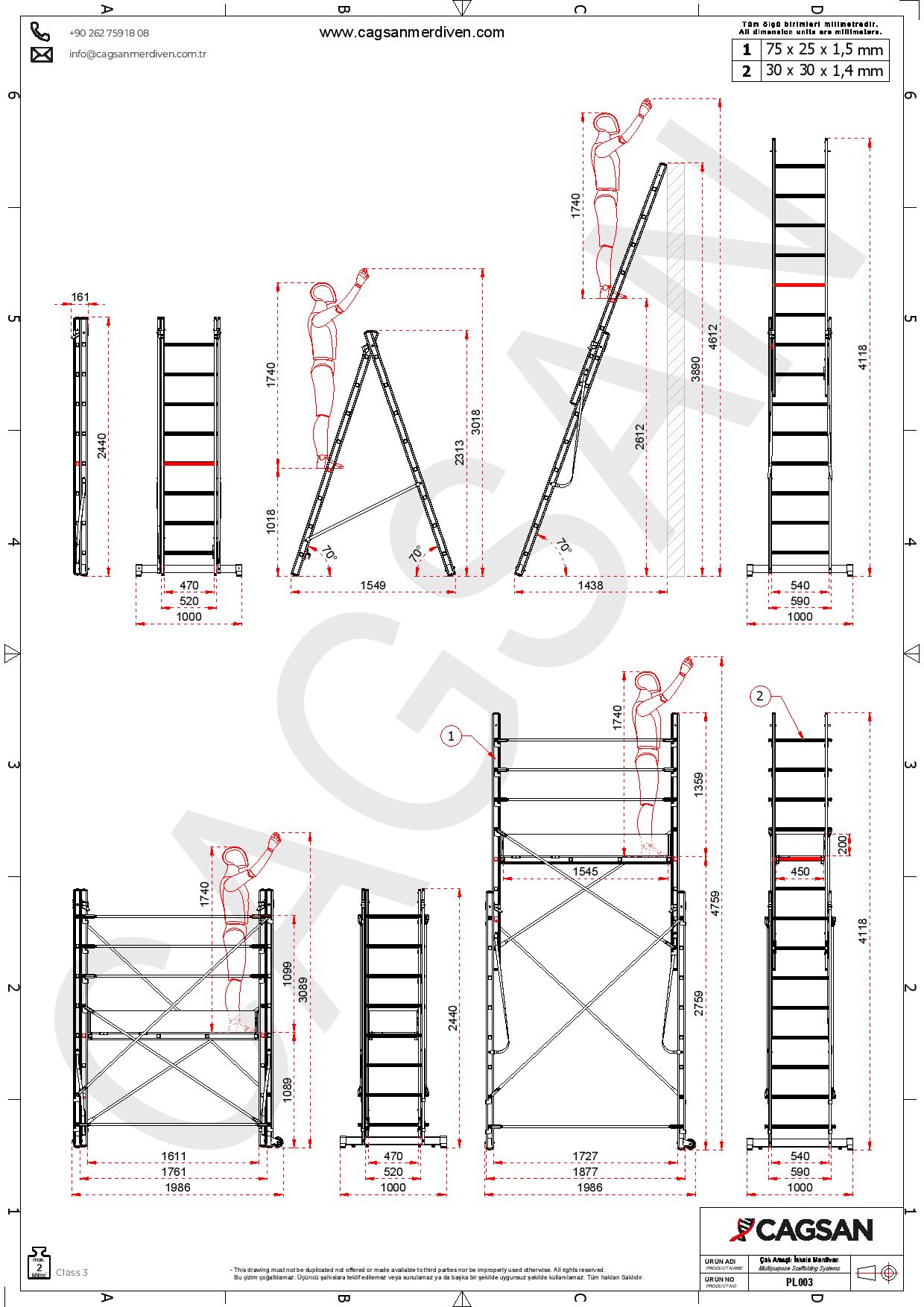 Multifunkcionalna skela merdevine je namenjena za radove do 4.7m. radne visine. Dimenzije platforme na pokretnoj skeli merdevine je 45x155cm.