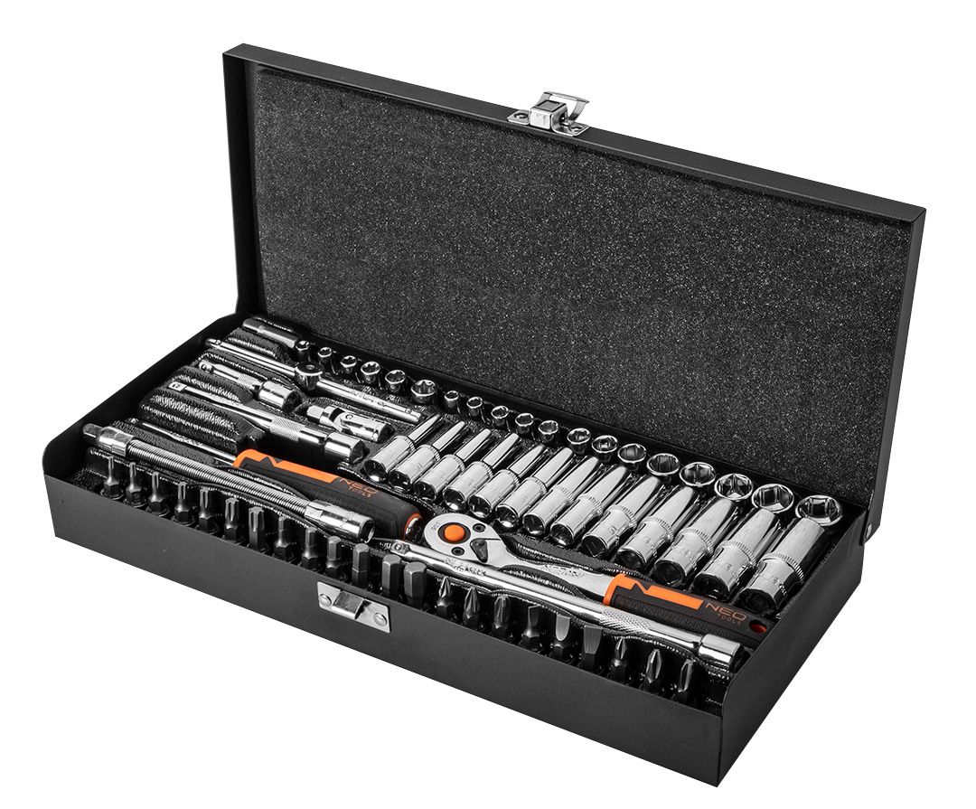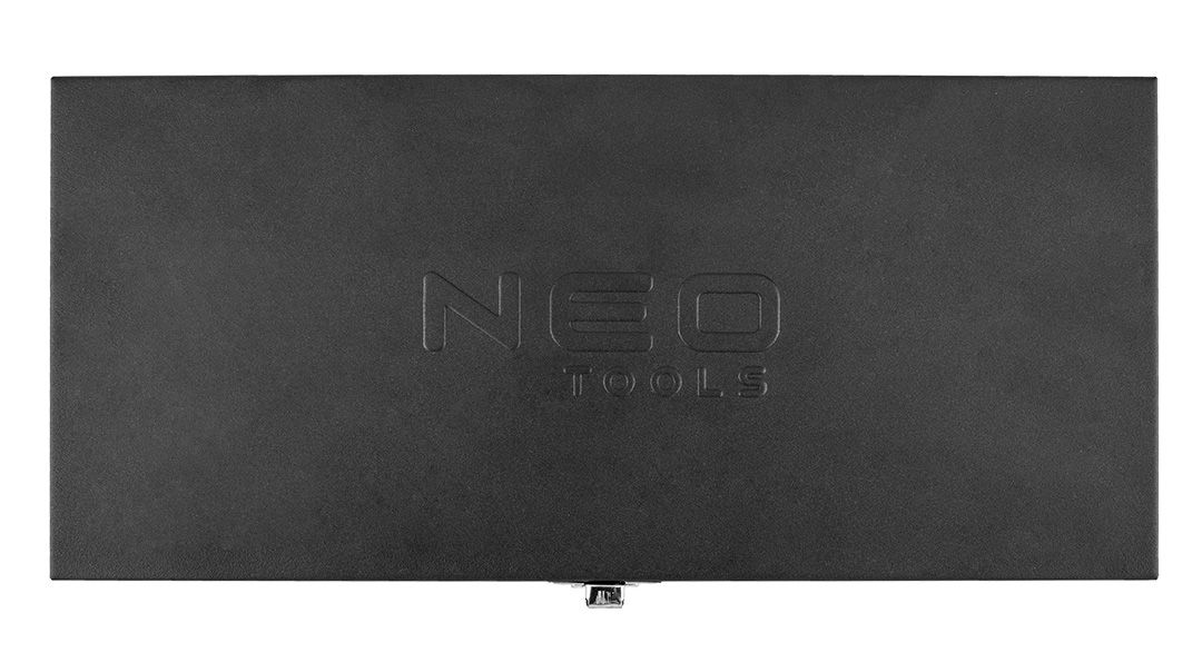 NEO set nasadnih ključeva (šifra 10-008) je kompletan set alata veličine ¼”, koji dolazi u izdržljivoj i praktičnoj metalnoj kutiji sa utisnutim logotipom. Set sadrži 63 dela, izrađenih od visokokvalitetnog hrom-vanadijum čelika. U setu se nalazi širok spektar šestougaonih čaura dimenzija od 4 do 14 mm. Čaure su dostupne u dve verzije: kratke (pliće) i duge (duboke), što omogućava savršeno prilagođavanje alata obradi konkretnog elementa.