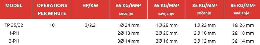 Naziv proizvoda : Ofmer mašina za sečenje/savijanje armature TP25/32, 400V, 3KS, max seč/sav. 24/28mm