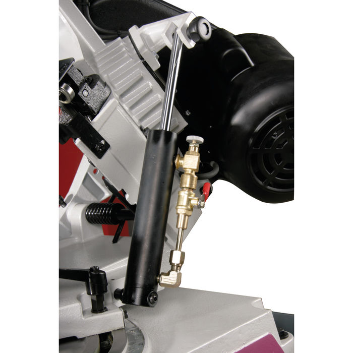 Testera sa hidrauličkim spuštanjem rama. Postolje se standardno isporučuje.