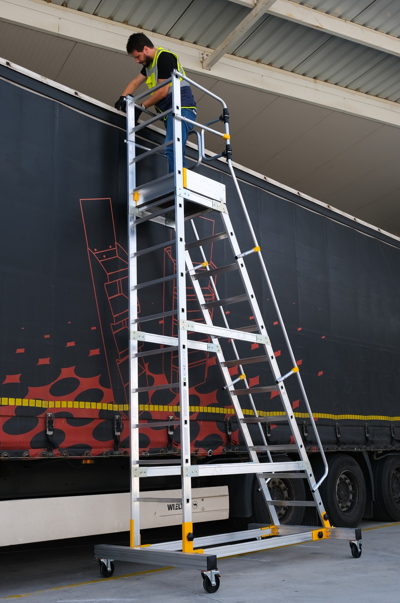 Ove aluminijumske platforme ili merdevine za regale, magacine i police se koriste lakim postavljanjem u poziciju koja Vam odgovara, zahvaljujući točkovima i laganoj konstrukciji. Zbog dobrog dizajna i dimenzija merdevine za regale i magacine mogu se lako kretati iz prostorije u prostoriju i po magacinu između polica.