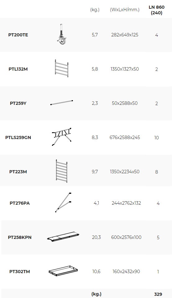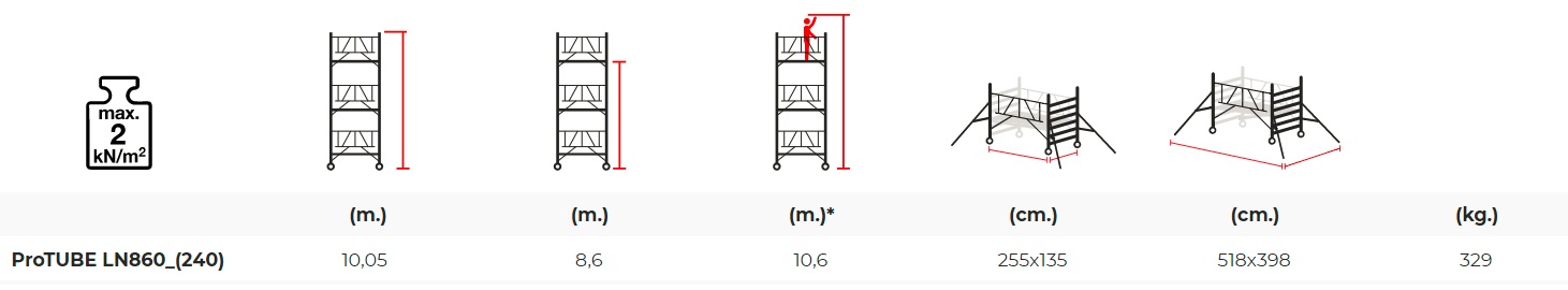 Naziv proizvoda : Profesionalna aluminijumska pokretna skela LN860_240, radna v. 10,6m, (120x240cm)
