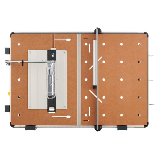 za nadstolne glodalice s maks. 230 V, maks. 1800 W, maks. 180 mm promjer osnovne ploče, maks. 40 mm visina osnovne ploče i za maks. 27 mm promjer glodalice; primjena samo s paralelnim graničnikom glodalice (br. art. 6901000)!