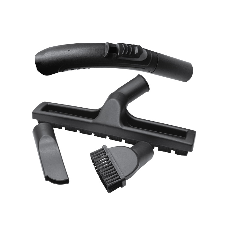 - Pomoću priloženih točkića lako se pomera na potrebno mesto, a sve nastavke, kao i kabel možete poneti sa sobom na praktičnim držačima koji se nalaze na kućištu