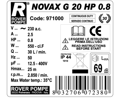 Naziv proizvoda : Pumpa za pretakanje tečnog sapuna i sirupa za prihranu pčela NOVAX G 20, 230V, 1750 l/h