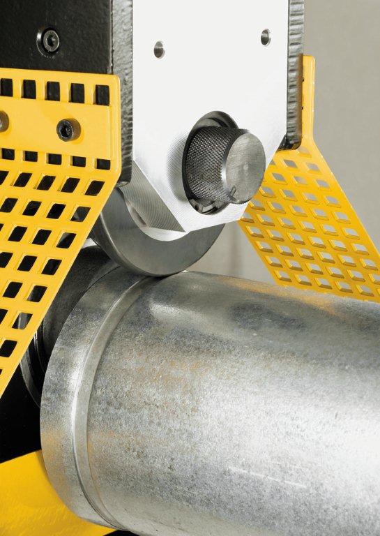 - 347000 Dokazani REMS valjci za žlebove sa savršeno prilagođenim valjcima pod pritiskom i valjci protiv pritiska sa dobro prianjajućim aksijalnim nazubljenjima garantuju sigurno okretanje cevi i precizno žlebljenje