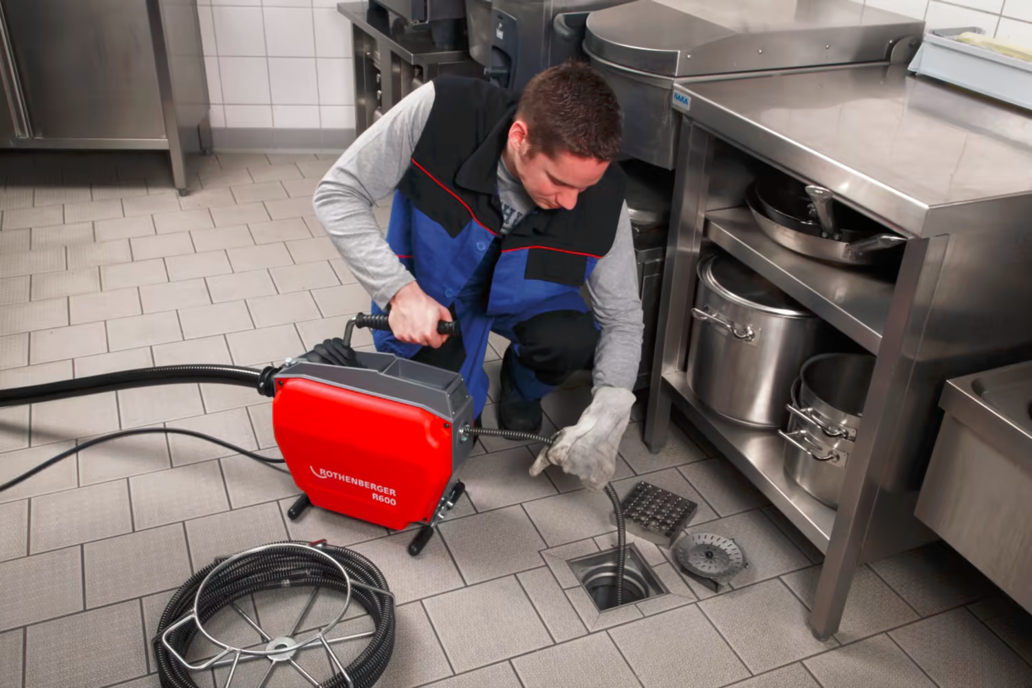 Naziv proizvoda : Rothenberger mašina za odgušenje kanalizacije R600, za cevi do fi150 (72687) - sa zaštitnom crevom, bez spirale