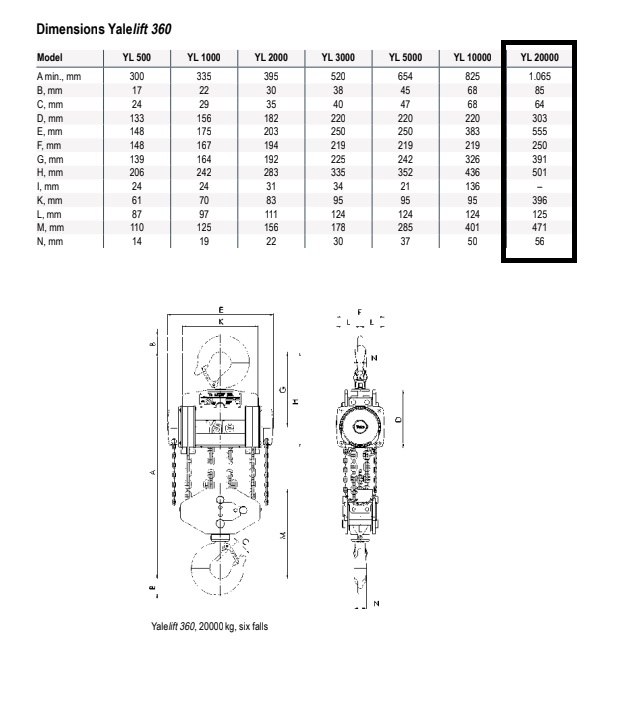 Naziv proizvoda : Ručna lančana dizalica 20T, 3m, 360° - Yalelift YL 20000