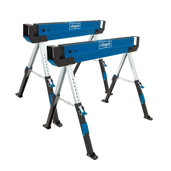Scheppach radni stalak - postolje set 2/1 MWB600 je idealan za postavljanje radne površine ili stola na gradilištu, u podrumu ili bašti kada je to potrebno. Radni stalak je individualno podesiv po visini, što omogućava lako postavljanje na neravnom terenu, čime se obezbeđuje stabilnost i sigurnost tokom rada. Izrađen je od visokokvalitetnog čelika, što garantuje dugotrajnost i čvrstoću konstrukcije.