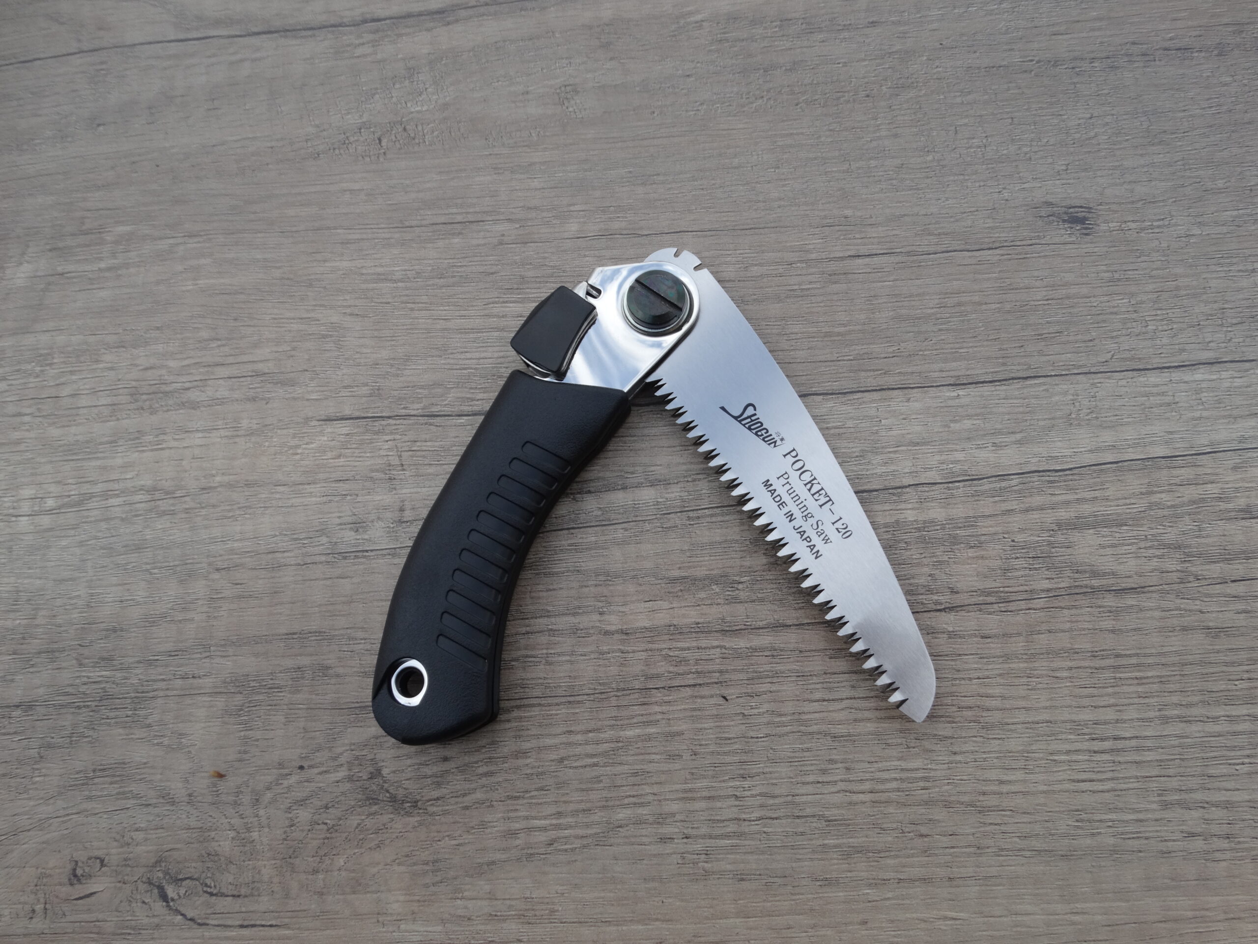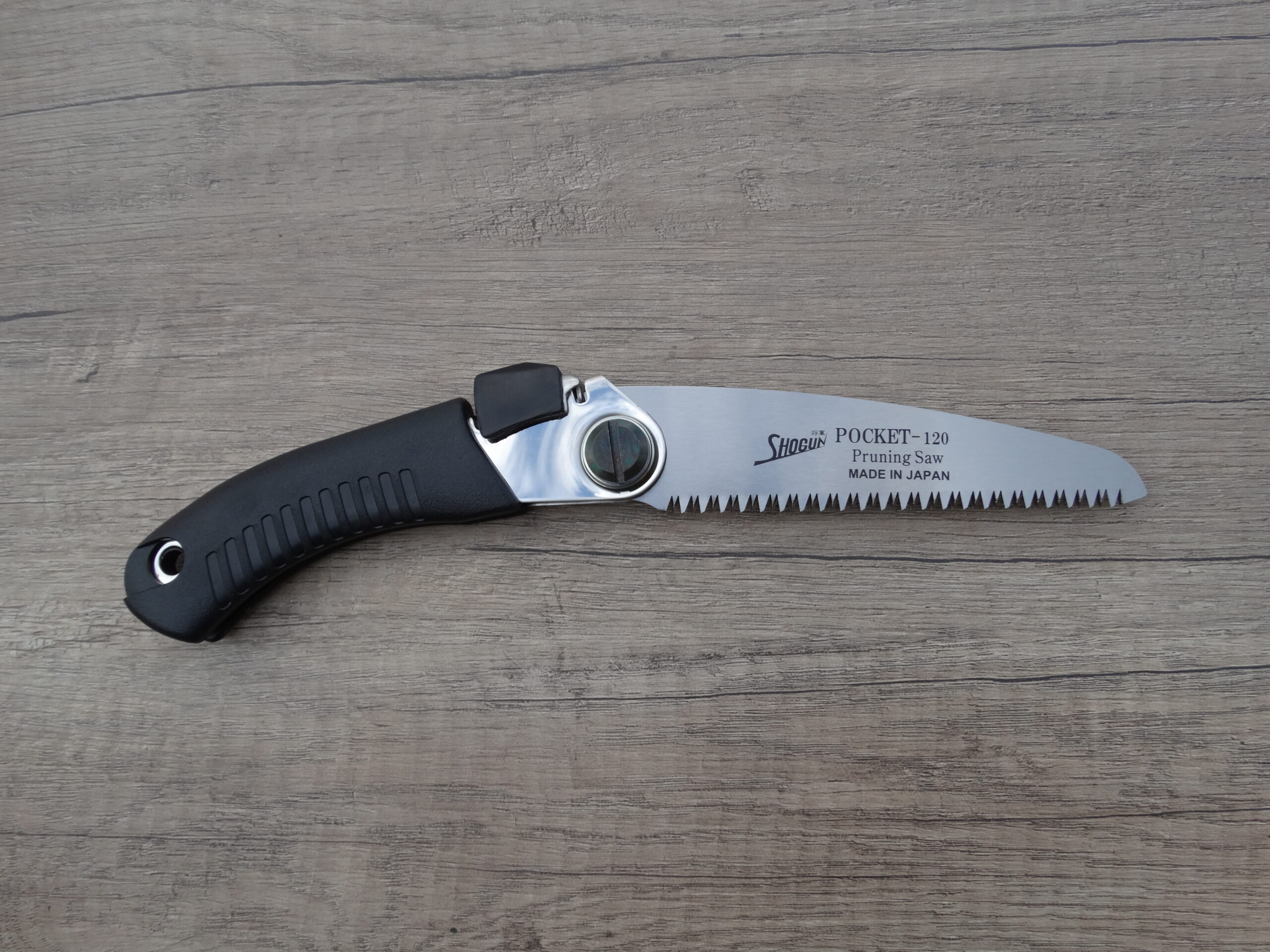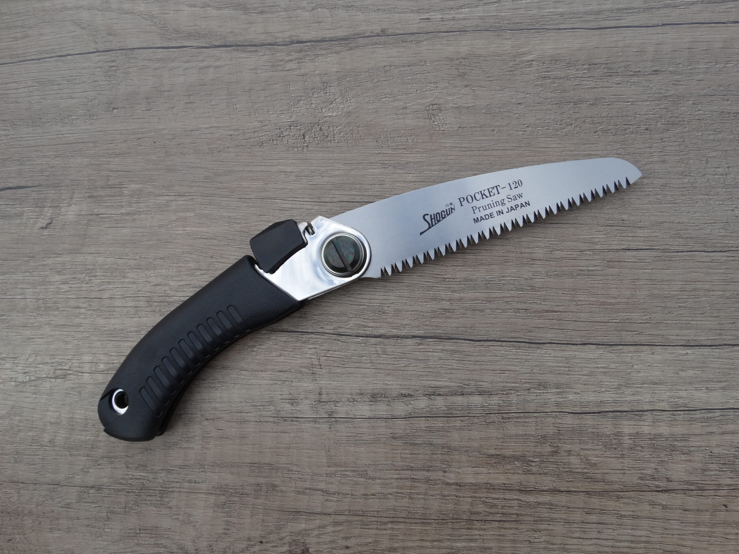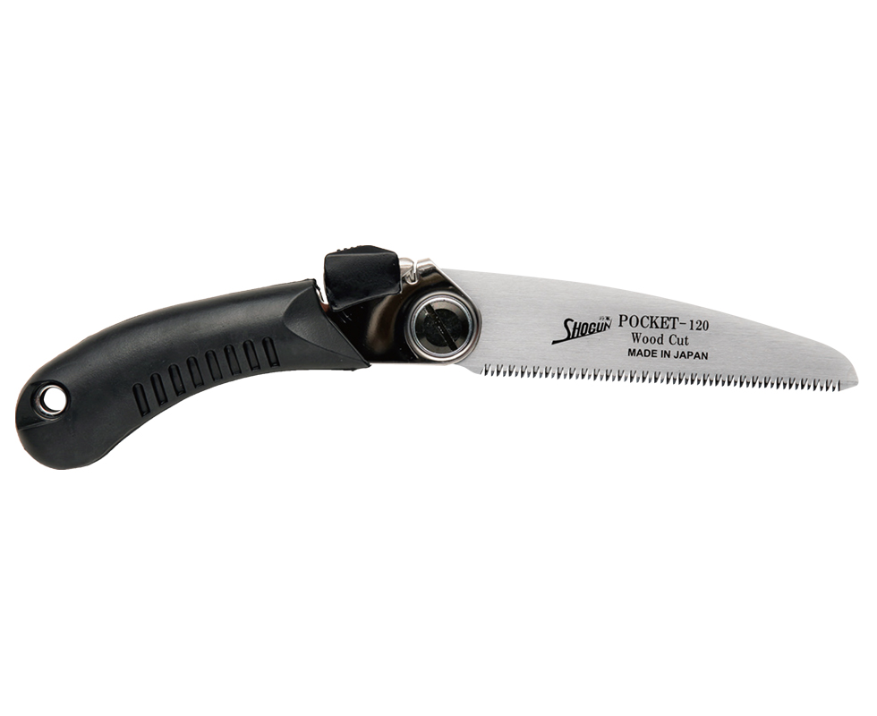 Shogun japanska ručna testera MK-120/W je džepna testera za sečenje suvog drveta i drvene građe. Sklopiva je, što je čini kompaktnom i pogodnom za nošenje u rancu ili čak u džepu. Sečivo se otključava, odnosno otvara laganim pomeranjem sigurnosnog dugmeta za zaključavanje sečiva. Kada završite sa korišćenjem, jednostavno ga sklopite nazad u dršku. Sečivo se može podesiti u dva položaja (2-stepeno podešavanje ugla drške), zahvaljujući čemu je sečenje mnogo lakše na tlu ili na teško dostupnim mestima.
