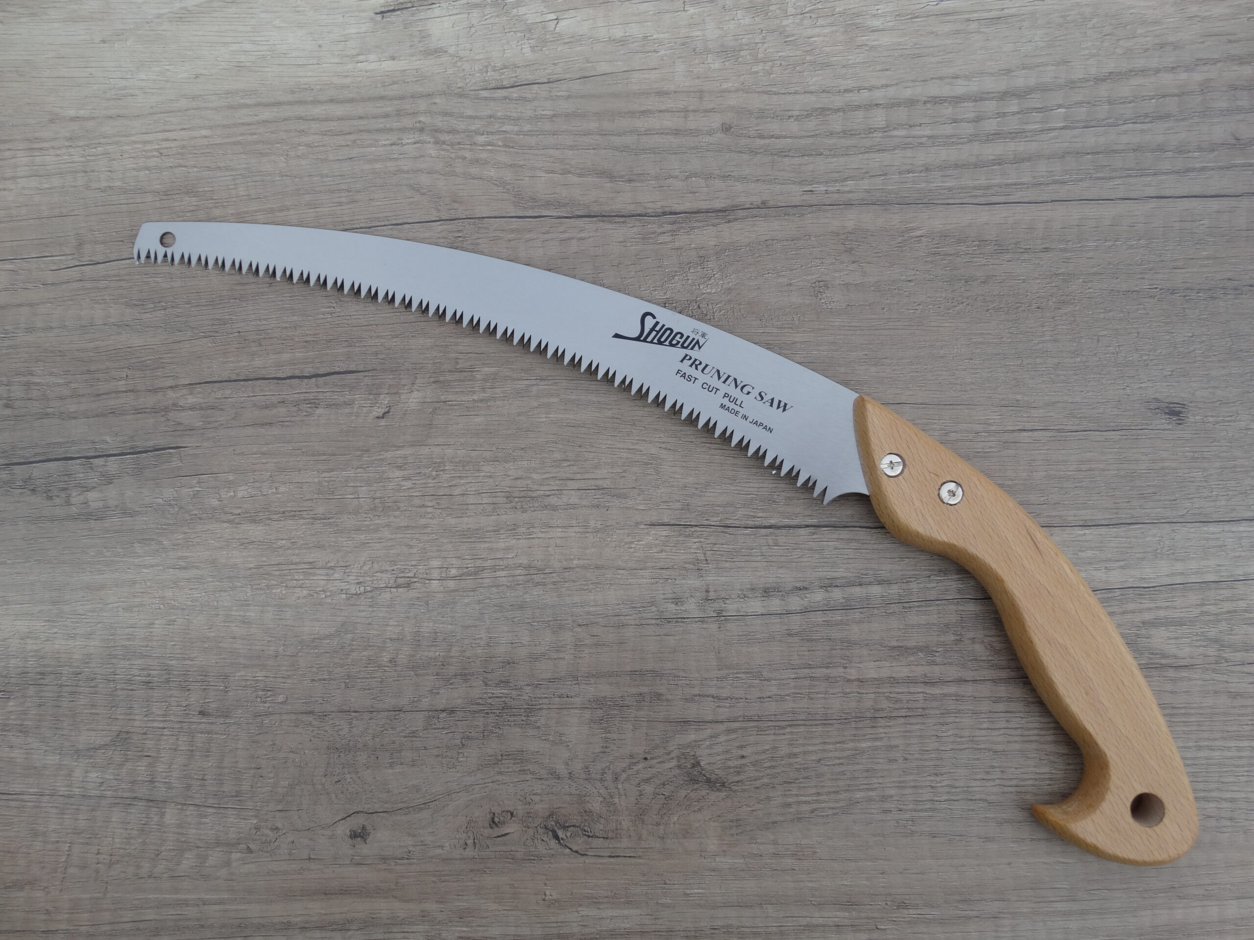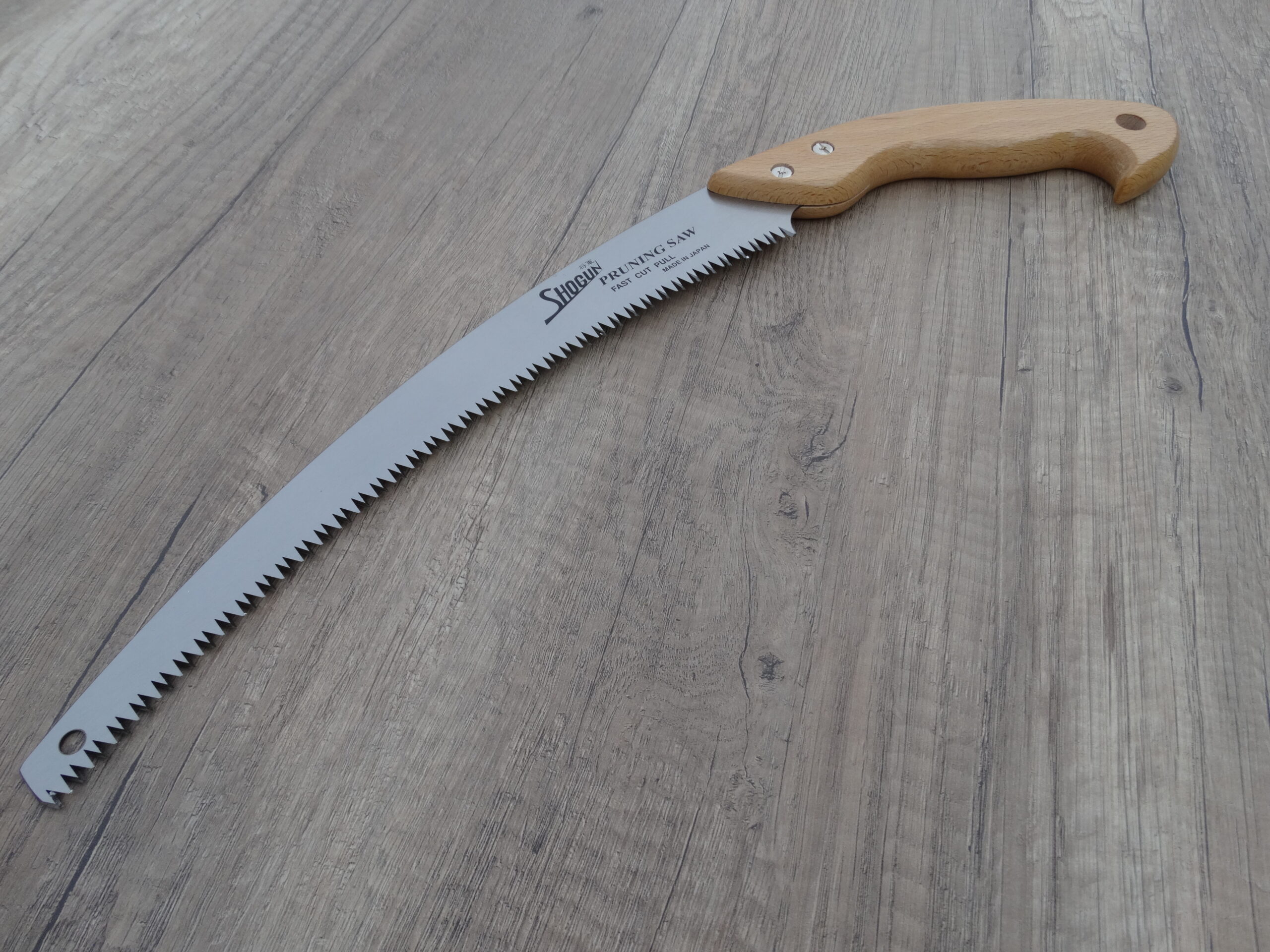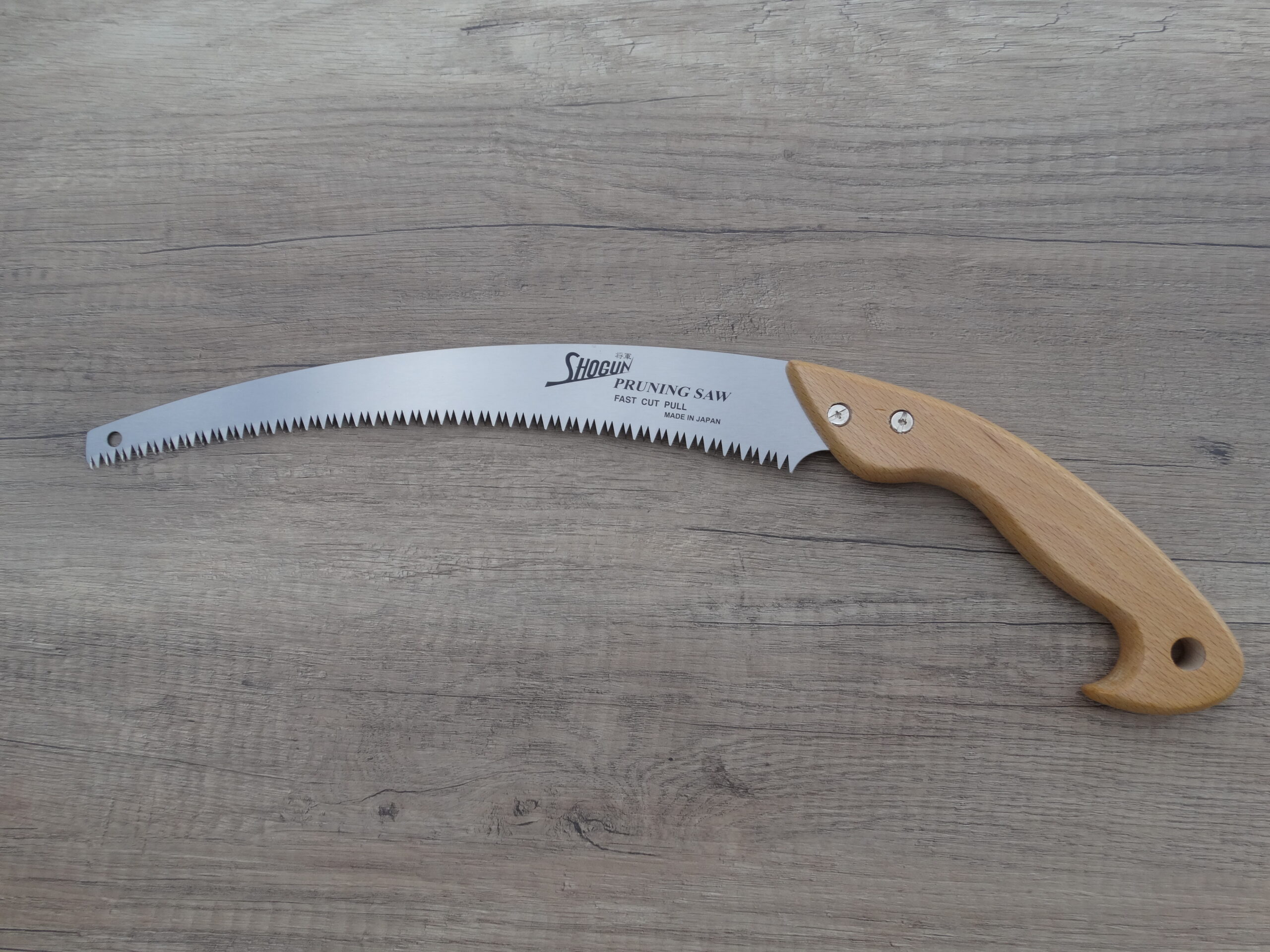 Shogun japanska ručna testera MK-330/WH je zakrivljena testera za upotrebu u šumarstvu i baštovanstvu, za sečenje svežeg zelenog drveta, grana, ogrevnog drveta. Ova testera je izradjena od japanskog ugljeničnog alatnog čelika vrhunskog kvaliteta, koji je standardno termički obrađen i poliran.