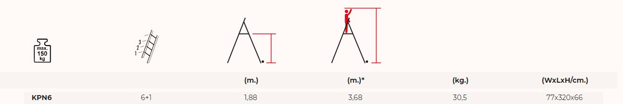 Naziv proizvoda : Sklopiva aluminijumske platforma merdevine KEYPRO KPN6, 6+1, visina platforma 1,75m, max radna v. 3,7m