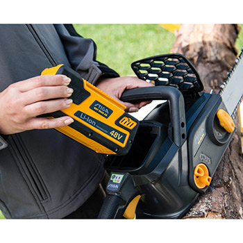 Ovu moćnu motornu testeru pokreće inovativna litijum-jonska baterija od 5 Ah (prodaje se odvojeno) i motor od 48 V bez četkica za veću slobodu.