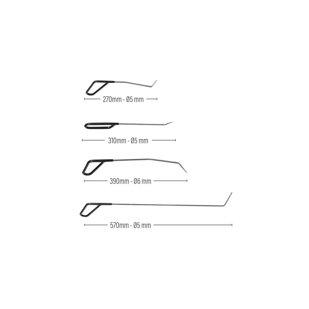 TELWIN Kit 20 HAIL RODS je profesionalni set specijalnih čeličnih šipki namenjen za ispravljanje udubljenja na karoseriji bez potrebe za lakiranjem, koristeći „paintless dent repair“ tehniku. Set od 20 šipki različitih oblika i veličina omogućava rad u raznim situacijama i pristupima, što ga čini idealnim za auto-servise, limarske radionice i profesionalce u popravci karoserije.