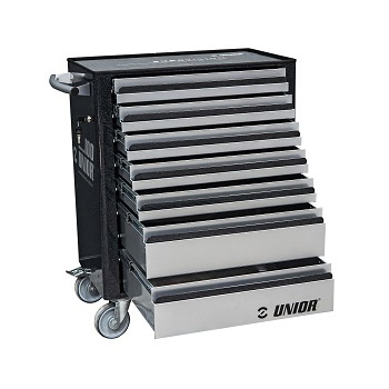 Ova garnitura UNIOR alata u kolicima namenjena je za: autoservise, servise poljoprivredne mehanizacije, za industriju, radionice i sektore održavanja vozila, kamiona i sl.