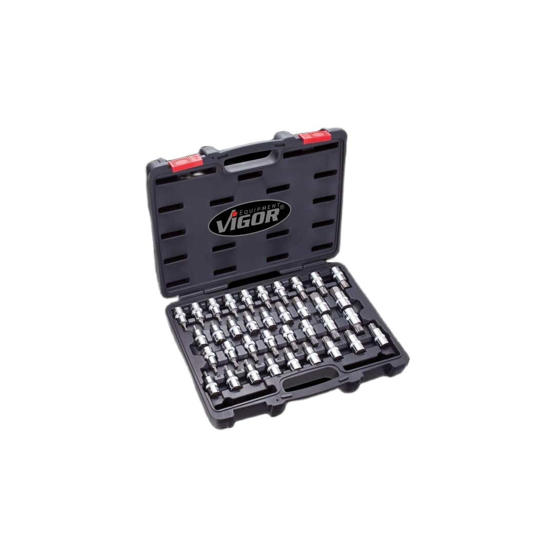 VIGOR profesionalni set nastavaka 1/2" predstavlja univerzalni komplet za rad sa različitim tipovima vijaka u servisima i radionicama. Set sadrži 36 nastavaka sa prihvatom 1/2" (12,5 mm) koji obuhvataju najčešće korišćene profile: TORX, inbus (hex), XZN – 12-ugaoni profil i ribe.