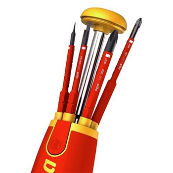 Odvijač za električare sa 6 izmenljivih bitova koji stoje u dršci