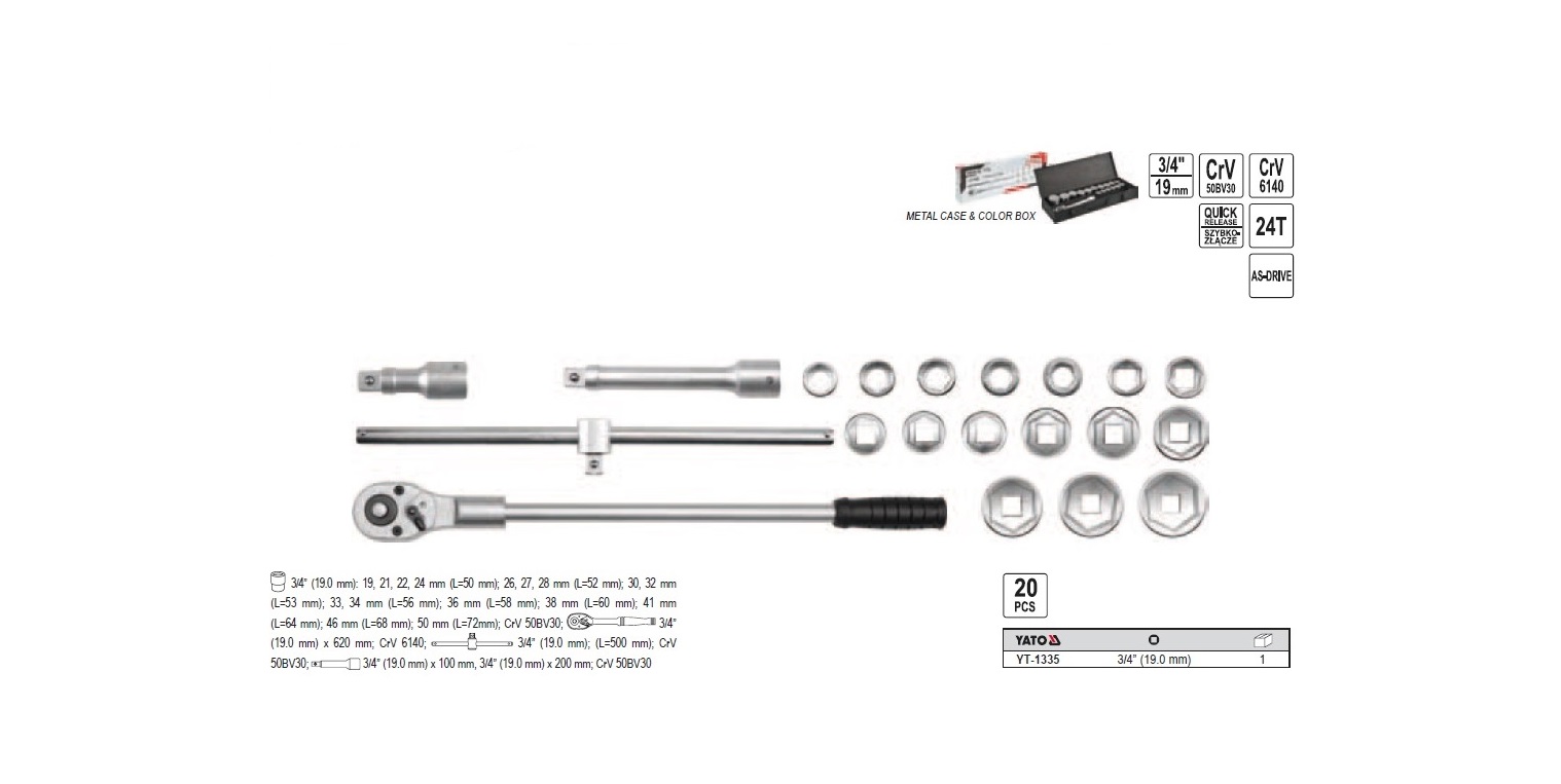 Naziv proizvoda : Yato garnitura nasadnih ključeva 3/4" 20 kom YT-1335
