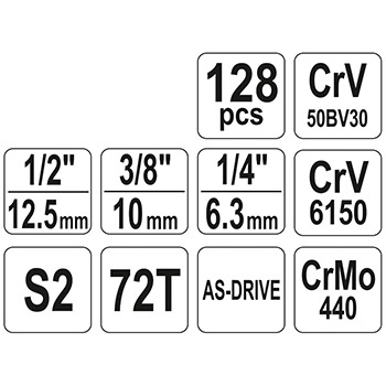 Profesionalni komplet od 128 alata u plastičnom koferu, koji je razvijen da zadovolji potrebe specijalizovanih auto-mehaničarskih usluga