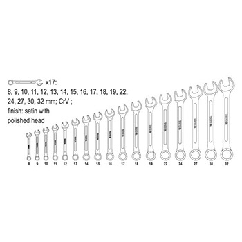 Garnitura viljuškasto-okastih ključeva 8-32mm 17 kom Yato YT-0363